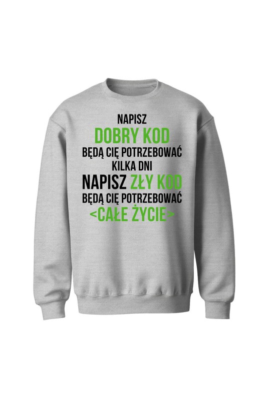 Bluza bez kaptura Napisz dobry kod będą cię potrzebować kilka dni Napisz słaby kod będą cię potrzebować całe życie