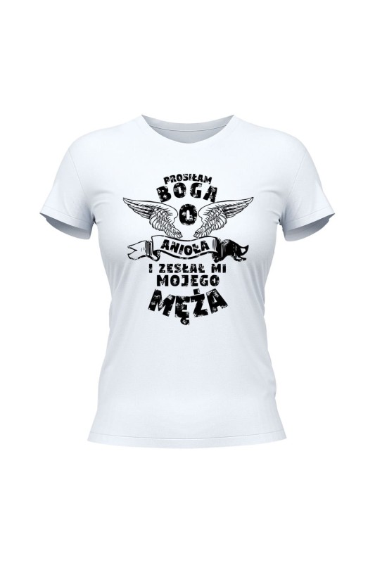 Koszulka damska Prosiłam Boga o anioła i zesłał mi mojego męża