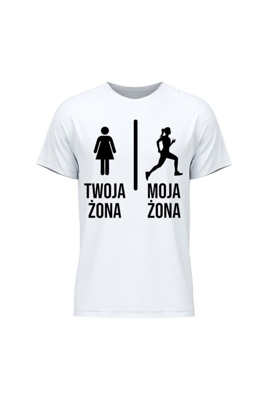 Koszulka męska Twoja żona vs Moja żona Bieganie